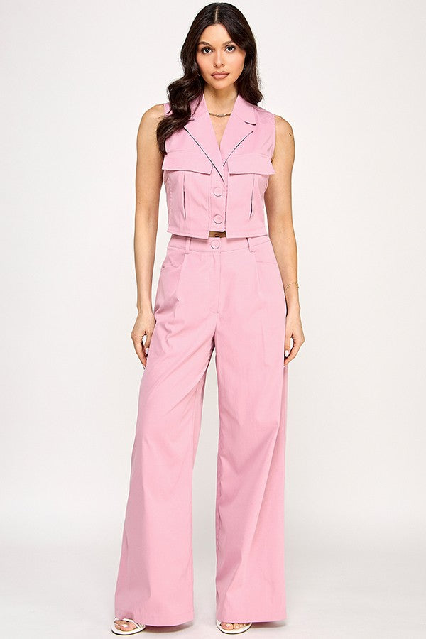Soft utility meets effortless elegance in the Krystal set. With a sleeveless utility pocket top and matching straight-leg trousers, this set delivers on ease and elevated style. Wear it together for a clean statement look or mix the pieces into your capsule wardrobe.