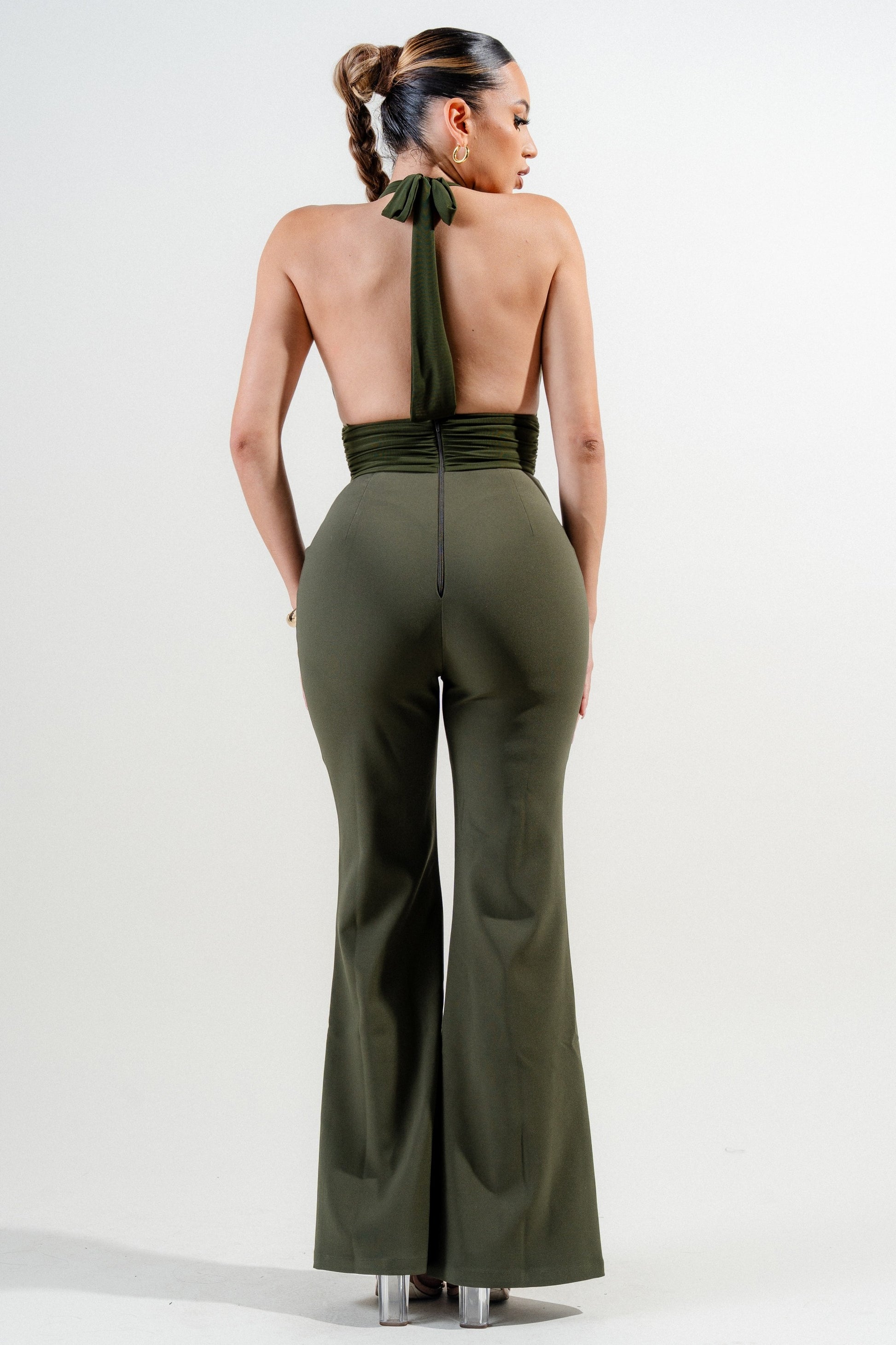 Step out and turn heads in our most popular piece: Our Angelica Jumpsuit in Deep Olive.